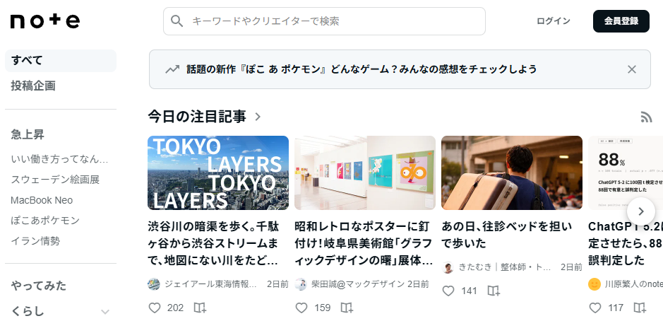 noteは「クリエイターの街」のような場所です。ただ情報を消費するだけでなく、好きな書き手を応援する温かいコミュニティの雰囲気が最大の魅力ですよ。