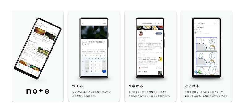 「だれもが創作をはじめ、続けられるようにする」というミッションを掲げるnoteは、広告の少ないクリーンなデザインで、文章や写真、音声などの作品に没頭できる空間を提供しています。