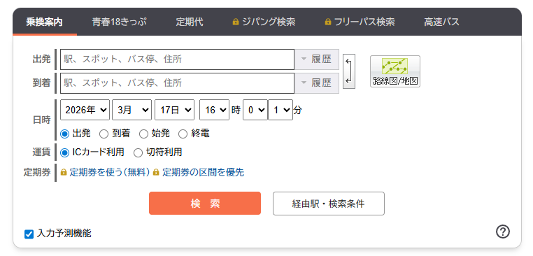 - そのまま検索: インストール不要で、トップページの検索窓に出発地と到着地を入力するだけですぐに利用可能です。
